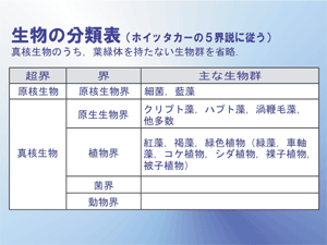 植物と動物の二つのグループにわける”伝統的考え”は、現代生物学では受け入れることができません。菌類や細菌など、植物とも動物とも言えない生物群があるのです。現在は、生物を真核生物と原核生物の二つに分け、真核生物をさらに4つ(原生生物、動物、菌類、植物)に細分する考えが主流です。