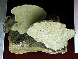木材を腐朽する菌類として、代表的なのはサルノコシカケなどの担子菌です。化石からは菌糸や分解の痕跡が見つかります。石炭紀には、すでに現在の菌に近い分解能力を持った担子菌がいたようです。テングタケやベニタケ、イグチといった菌の祖先も、多くは三畳紀頃に分化していたと考えられます。この時代には、マツ科植物が進化しました。これらの菌とマツは、密接な共生関係を結んでおり、マツの生活はこれらの菌ぬきには考えられません。マツ科針葉樹の発展とともにこれらの菌も進化していったと考えられています。