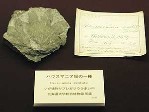 岡山県成羽町付近に分布する成羽層群から産出する化石植物群。年代は三畳紀後期で美祢植物群よりわずかに新しい時代の植物群と考えられています。多くの種類のヤブレガサウラボシ科のシダ植物やソテツ類を産出しています。