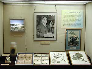 三木茂博士(京都大学、後に大阪市立大学)は、和歌山県や岐阜県の粘土層の中から、ヌマスギやセコイアとは異なるスギ科の針葉樹を発見し、1941年に新属新種メタセコイアとして発表しました。その後、1945年に中国で生きているメタセコイアが発見され、「生きている化石」として有名になりました。大阪付近では約70万年前に消滅し、現在は植樹されたものが見られるだけです。消滅の原因としては、海水準変動による低地の生育地の縮小・拡大にあわせて、分布域を移動させることができなかったことが考えられます。