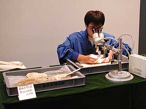 植物の葉、果実、種子の化石を調べるためには、特徴がよくわかるようにクリーニングしたり、岩石の中から化石を取り出す必要があります。化石では一つの植物全体が残ることはないので、植物図鑑の検索表をそのまま使うことはできません。化石で見ることができる特徴に注目して、種類を調べていきます。ここでは、新生代の植物化石の調べ方について紹介します。