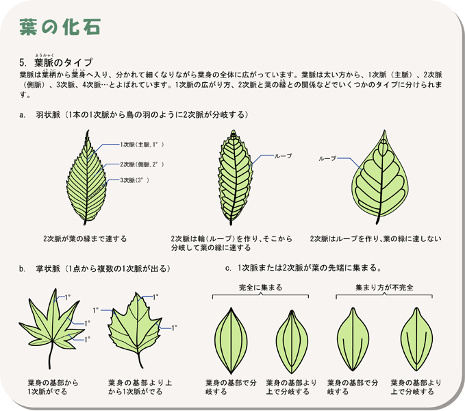 広葉樹の葉脈のタイプ