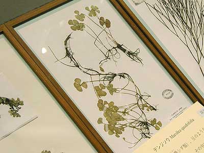 シダ植物(薄嚢シダ類)。豆のような形をした胞子嚢果をつけ、その中に大小の異形胞子をもつ。和名は「田字草」の意で、葉の形による。かつては水田雑草だったが、近年は激減している。大阪府では絶滅寸前。