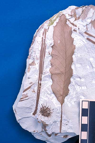 左から、オオミツバマツ短枝、フウの果実、タナイカシの葉。