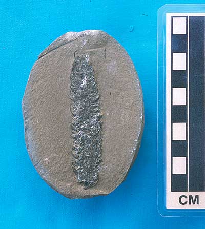 多くの小胞子葉が集まっている。枝先にぶら下がっていた。