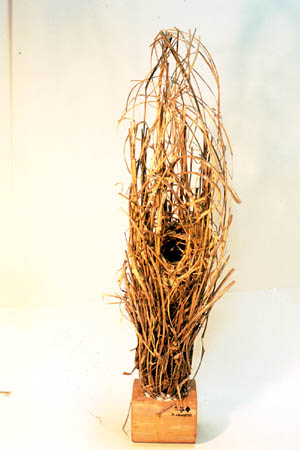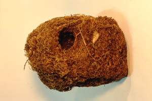 ●ウグイスの巣(小海途コレクション) 草に丸い巣をかける。横に出入口の穴がある。 |