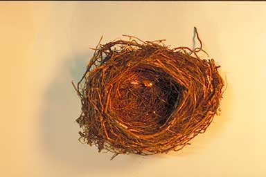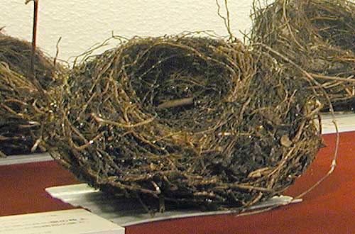 枯草、ツタ、樹根などを使ったお椀形の巣で、産座に茎、穂などを敷く