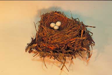 枯草、枯れ枝、樹皮などを使ったお椀形の巣で、産座に細根などを敷く