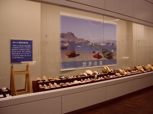 世界中には10万種を超える巻貝(腹足類)と二枚貝が知られています。これらは地球の歴史とともに数億年間をかけて進化し、暖かい海・冷たい海、太平洋、大西洋など各地の海に分布するようになったものです。ここには大きな貝、形の変わった貝、美しい貝などを選んで展示しましたが、海の中ではこれらの貝殻を背負っていた動物がいたことも忘れないでください。