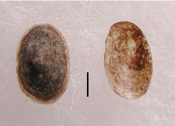 | 金魚や熱帯魚の水槽をよく見れば、家の中でも貝を見つけることができるかもしれません。とくに、水草を入れていると、それにくっついてモノアラガイのなかまやサカマキガイが一緒に入ってくることがよくあります。これらの貝は、水槽の中で水草やガラスに卵を産みつけて繁殖することもあります。また、同じようにして、カワコザラガイというわずか3mmほどの傘型の貝が水槽内で発生することがあります。大発生するとガラスにもたくさん這はいあがってきます。小さくて、川や池にいても見つけるのがむずかしいので、このようなときが観察のチャンスです。 |