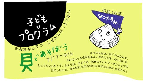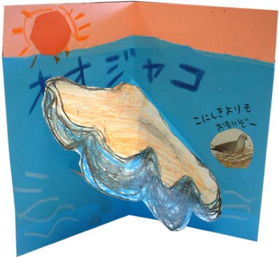 はくぶつかんに、あそびにきたきねんに、おきにいりの貝の絵をかいてみよう。そしてキミだけの「貝のとびだすカード」をつくってみない? こんなのだよ==>(クリックしてみて) |