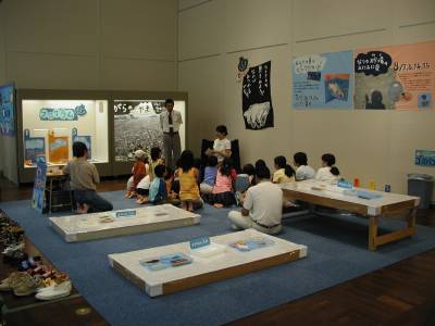 ワークショップは、おやすみです。そのかわり、小学生のみんなには、会場にならんでいる貝のことがよくわかる「キッズマップ」をプレゼント。このマップで貝のふしぎに せまろう! |