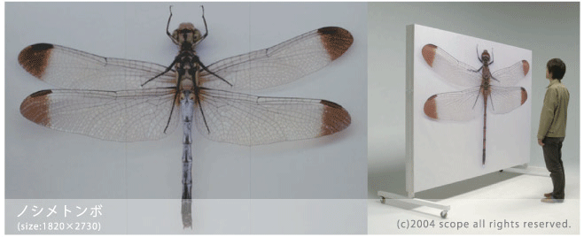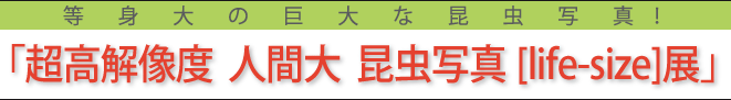昆虫の写真を人間の等身大に拡大して展示します.普段は顕微鏡だけで垣間見られる昆虫のからだが,人の大きさにまで拡大されることにより,それらの持つ機能の合理性がよくわかり,またその造形美からも,生きものへの興味や命の神秘を感じることができます.