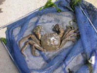 | 1938年に大和川で採集されたカワラゴミムシ標本(当館所蔵) | 大和川にすむモクズガニ(左:大阪市住之江区) | 「プロジェクトY」で調べたモクズガニの分布 |
