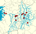 カワラゴミムシは地表性の小さな甲虫で、良好な砂地の川原でしか生息していません。現在の大阪府ではすでに絶滅しており、全国的にも稀少となっています。当館所蔵の田中龍三氏のコレクション中に、1938年に大和川で採集されたカワラゴミムシ標本が収蔵されています。小さな標本を通して、かつての良好であった大和川の環境が示されます。【「プロジェクトY」の調査で明らかになった大和川水系生物分布図】