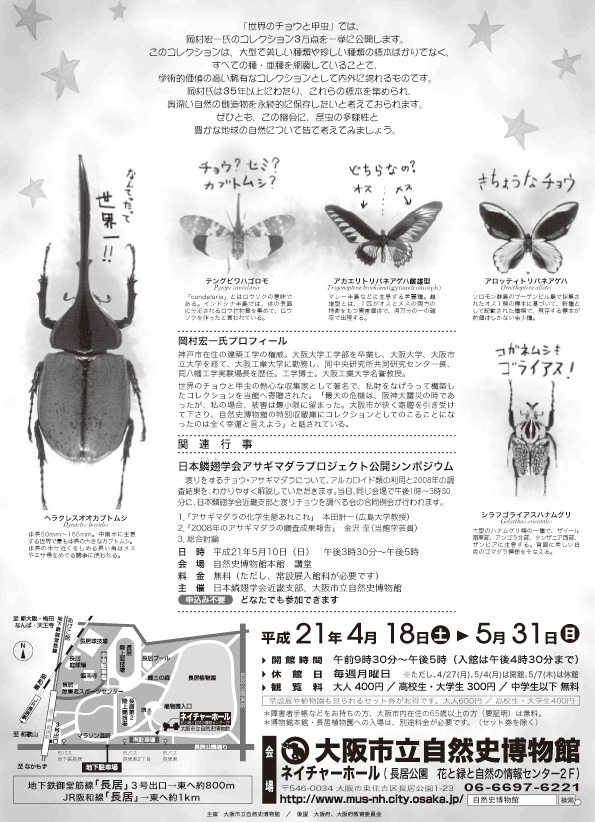 主催:日本鱗翅学会近畿支部、大阪市立自然史博物館