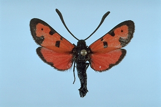 アルギラベニモンマダラ(ガ)アルジェリア〜モロッコの標高2000メートル以上の高地で採集されている。岡村コレクションには3頭のParatypes(副模式標本)が含まれる。