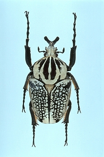シラフゴライアスハナムグリ大型のハナムグリ類の一種で、ザイール南東部、アンゴラ北部、タンザニア西部、ザンビアに生息する。背面に美しい白色のゴマダラ模様をそなえる。