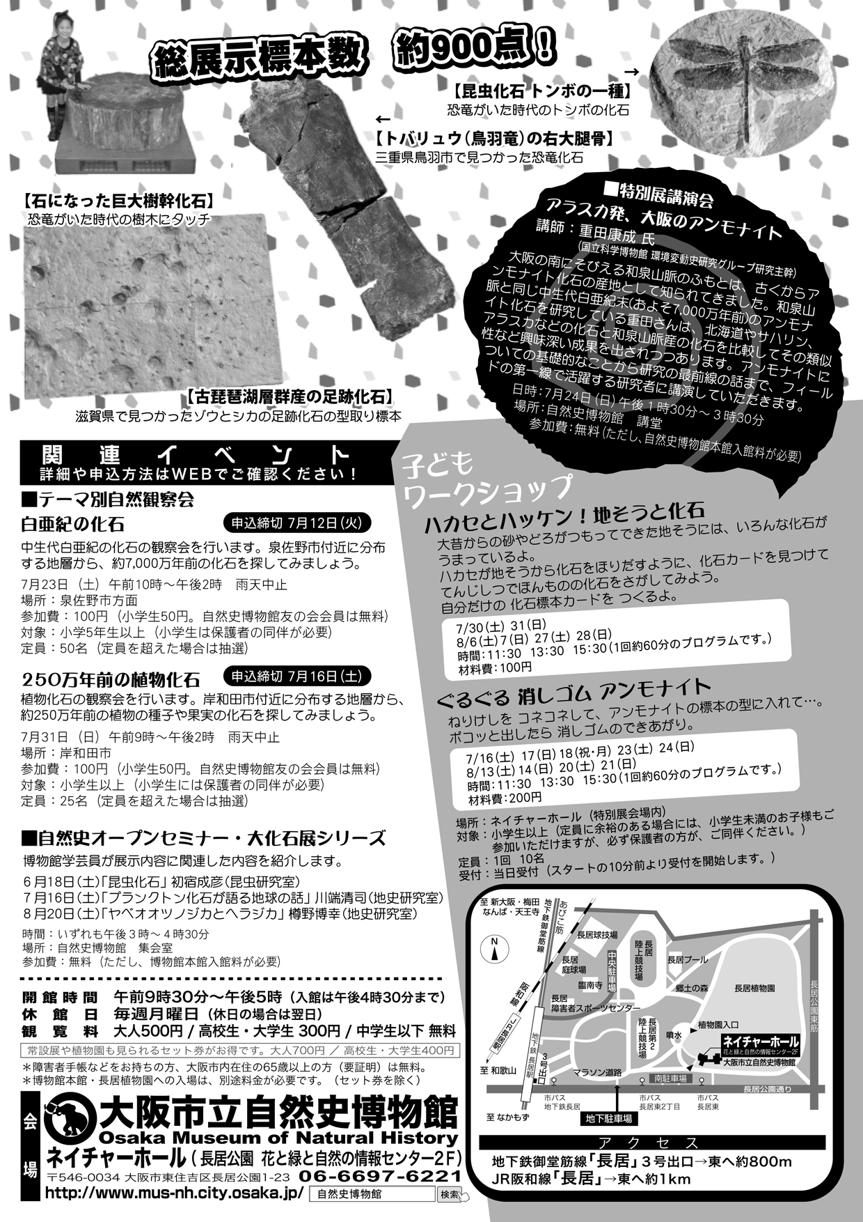 主催 大阪市立自然史博物館 後援 日本古生物学会、日本第四紀学会、日本地質学会
