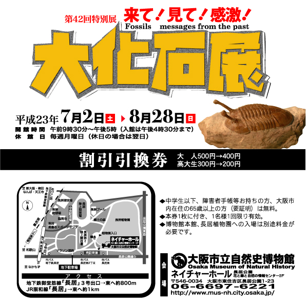 自然史博物館 06-6697-6221 〒546-0034 大阪市東住吉区長居公園1-23