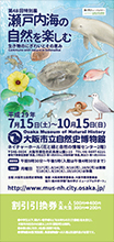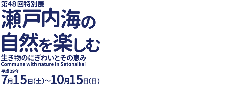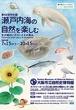 西日本の中心に広がる瀬戸内海は、外海とは切り離された、全体としては波の穏やかな海です。 しかし、そこには700を超える島々、海峡、複雑な海底地形があり、さらには潮流を生み出しています。 このような環境は、瀬戸内海に豊かな海の恵みと高い生物多様性をもたらしています。 沿岸にすむ人々は、古くからその恩恵を受けて暮らしてきました。大阪市立自然史博物館では瀬戸内海沿岸の博物館・水族館等と連携し、 2012年から5年をかけて市民参加の観察会や調査会などを行い、多くの情報や標本資料を蓄積してきました。 今回の特別展では、私たちが瀬戸内海で見つけてきた多様で魅力的な自然、そして恵みを存分にご紹介します。