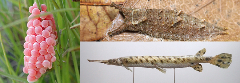 標本や画像だけではなく、外来の淡水魚、ナメクジ、水草など、可能な範囲で生きた外来生物も展示します。