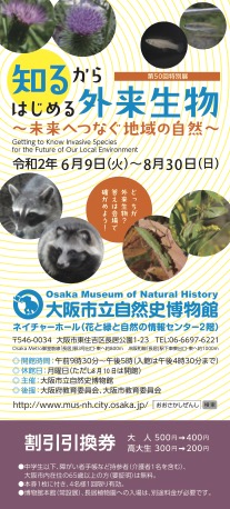 大阪市立自然史博物館では、2015年から2019年まで、市民参加型の外来生物調査として大阪府を中心にさまざまな外来生物の分布調査を行いました。その成果である分布図を中心に、アメリカオニアザミ、アカハネオンブバッタ、クビアカオオツヤカミキリ、スクミリンゴガイ(ジャンボタニシ)、カダヤシ、ドジョウ外来系統、コブハクチョウ、ヌートリアなど、大阪府周辺の外来生物を紹介します。
