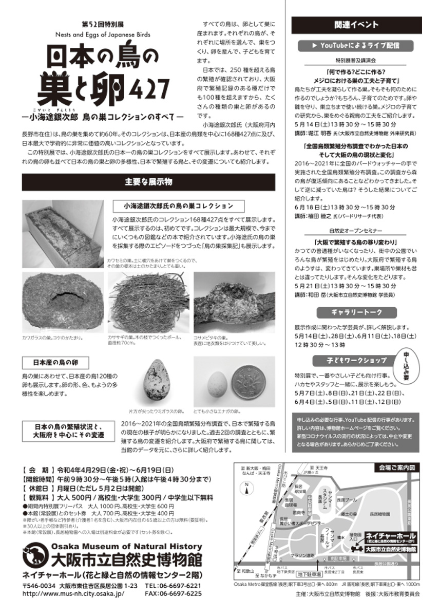 特別展「日本の鳥の巣と卵427」のイベントや最新情報をお伝えします。