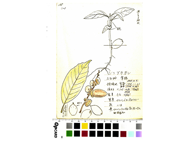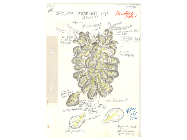 実物資料を克明に描いた図版は時に標本よりも残りやすく、観察した事実を伝えてくれることがあります。また、図版は生の時の色や微細な構造など、標本や文字による記録では残らない、しかし観察者が注目した特徴を記録するなど独自の価値を持ちます。もちろん標本には図版では得られない情報もたくさんあります。自然を記録する証拠として、標本と図版は互いに補い合いながらそれぞれに価値を持っていると考えます。磯野資料や本郷図譜など、いくつかの事例をもとに紹介してみたいと思います。