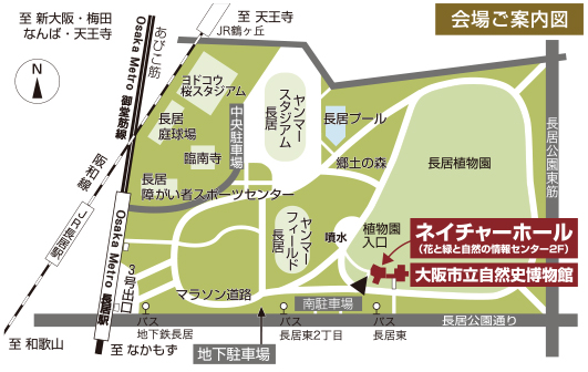 | 開催場所 | 大阪市立自然史博物館 ネイチャーホール (長居公園 花と緑と自然の情報センター2F) 〒546-0034 大阪市東住吉区長居公園1-23 TEL:06-6697-6221 FAX:06-6697-6225 |