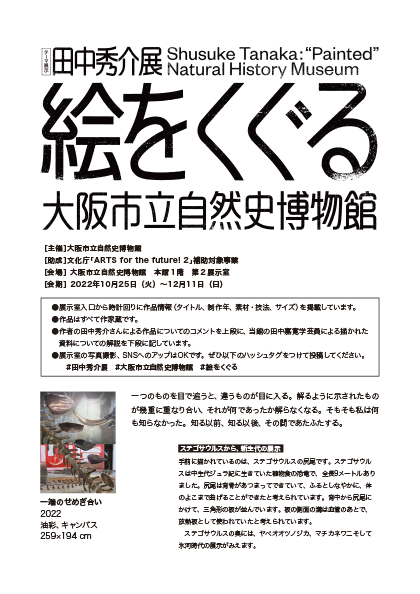| 登壇者 | 田中 秀介 氏(画家)、青木 加苗 氏(和歌山県立近代美術館)、佐久間 大輔 氏(大阪市立自然史博物館) |