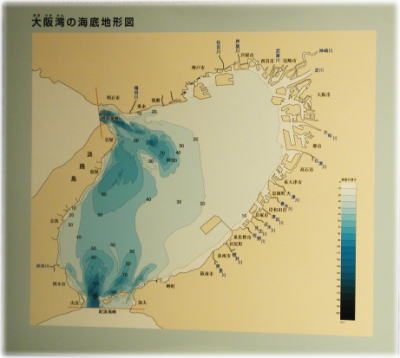 大阪湾は北東に深く入りこみ、奥には淀川などの大きな川が流れ込んでいます。この付近の海底は浅く、 泥がたまっています。また、川からの水には有機物や栄養塩類が多く含まれているので、湾内にはたくさんの 生物が生まれ育ちます。大阪湾には明石、紀淡というふたつの海峡があるため、海水が出入りしやすくなって います。