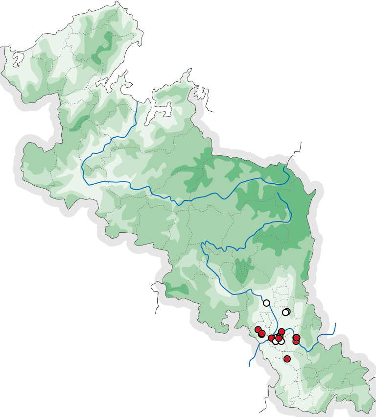 ※文献にある内陸情報としては、知る限り次のものがあります(下の分布図には反映させていません)。