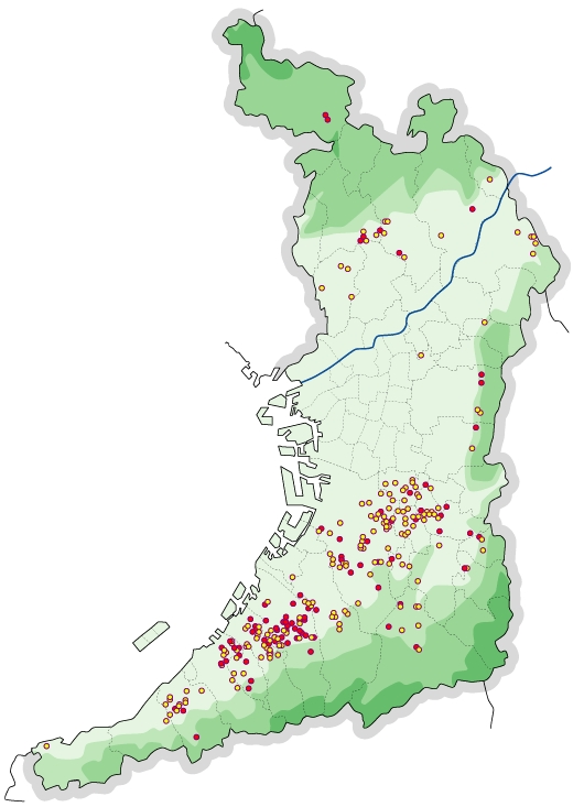大阪府下のため池のカイツブリの繁殖分布